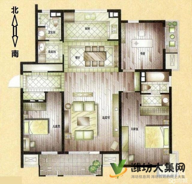 客廳?朝陽,兩明一暗,三室兩廳兩衛